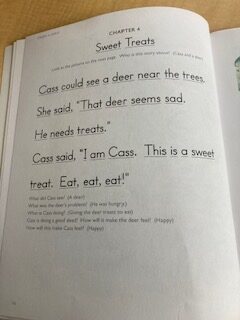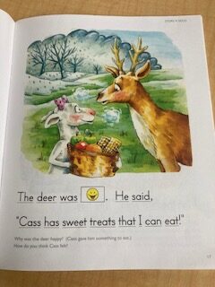 The next part of the English lesson was reading. The students had two different books because one was lower than the other. (Pic. 3-7) I liked the prompts Mr. Lunan used because they helped the students learn turn-taking and listening. The prompts were âmy turn, voice offâ and âready, goâ. The students then read the first two pages at the same time with Mr. Lunan. This was called a duet reading. This was great to see because they read in synch and if one of the students struggled to pronounce a word the other student would help. After they finished the chapter, they moved on to solo reading. Mr. Lunan asked if I wanted to assist with the students. I said yes and one of the girls came over to me and read the chapter over again alone this time. The two students I assisted had read the book before and improved within the short period I was with them. Mr. Lunan told the students that they improved so much from last week that they could move on to the next chapter with me. The main thing I noticed was the struggle between transition times. All the students were not used to a new person helping them. They needed the extra time for transitioning between activities and needed multiple breaks throughout the English lesson. At the end of the solo reading lesson when the two higher-level students were done reading and were able to free play, the lower-level student became overwhelmed and dysregulated because they did not want to read and found it challenging to stay on task. Mr. Lunan handled it very well. Mr. Lunan acknowledged the big behavior from the dysregulated student and used the prompt âCalm voice and ready to learnâ The student heard Mr. Lunan and calmed down once they realized he was waiting for them to refocus on the reading. The student calmed down and then continued with the chapter reading. This happened multiple times throughout the lesson. The student was not confident with their reading skills and when they became dysregulated it was partly to get out of the hard activity but realized it would only take more time to try to improve their reading skills. Because I had to leave before their reading session was done, I did not get to thank the teacher and the students for letting me observe and help assist with the lesson.