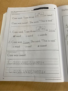 This was a great learning experience for me because students may have a bad day or not want to participate in a subject they do not like. Because they liked the structure of the English lesson there was less stress for the students because it was a safe space for them. During the English lesson, the students had a plan in place for the work that needed to be done during this time. Mr. Lunan had the workbooks ready and the books the students were reading as well. The students knew what was going to happen. When reading the flashcards the students demonstrated that they knew how to sound out words and then put them into a sentence. I noticed that these students were not as comfortable with me because I was new to them and not their primary teacher, Mr. Lunan. After the students demonstrated they knew how to sound out the words with flash cards. The students did very well with these. There were some words they struggled with because they learned them last week with Mr. Lunan.